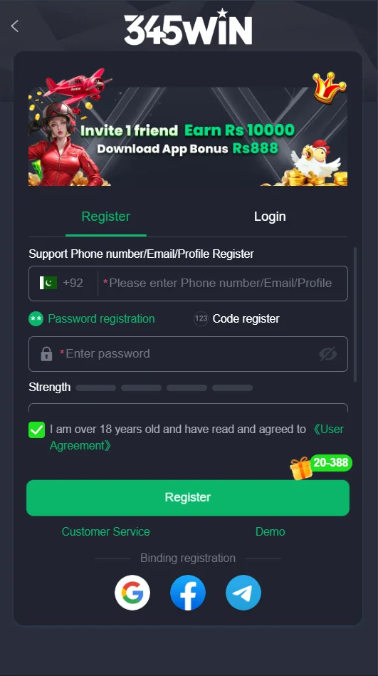 1. How do I register on the 345win Game?