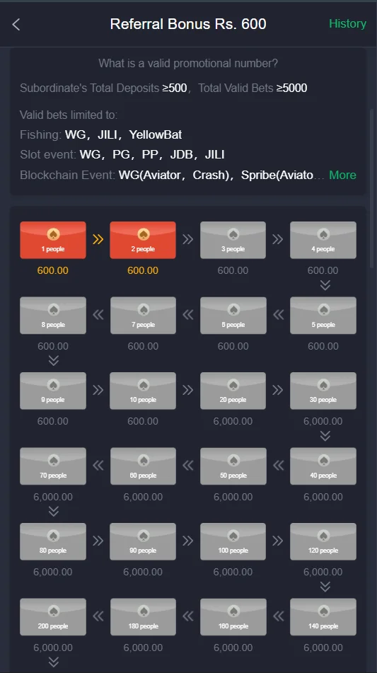 | Referral Bonus Rs600: | Inviting a friend can earn Rs600 when they deposit and play, helping both users grow together. |