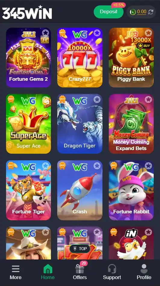 Various Games in the 345win Game